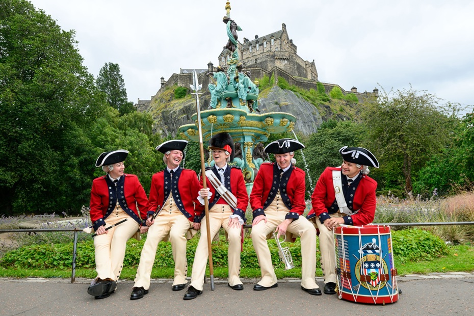 The United States Old Guard Fife and Drum Corps bring USA history to this year’s 75th Anniversary Tattoo. Against the iconic backdrop of the Ross Fountain and Edinburgh Castle, The United States Old Guard Fife and Drum Corps enjoy Edinburgh’s much-loved Princes Street Gardens ahead of their performance in The Royal Edinburgh Military Tattoo tonight.