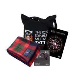 Make a night of it with our Tattoo Experience package, which includes a DVD of a past Show (multiple year choices available), Tattoo CD (multiple year choices available), a Tattoo tartan blanket perfect for getting cosy with and a Tattoo tote bag.